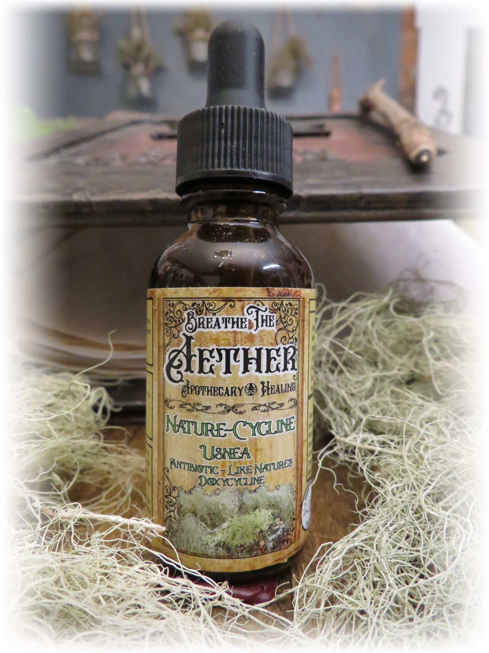 “Nature -Cycline”- Usnea Extract- Usnea is a naturally growing plant or “lichen” found in trees etc., and often called Old Man’s Beard and many other names. Usnea is used for Infections, inflammation and contains Usnic Acid which has anti-microbal and antibiotic properties. It also helps well with lung issues like pneumonia, tb, bronchitis and nasty colds and coughs. Since Usnea also has similar effects to the pharmaceutical antibiotic Doxycycline, it’s often called nature’s doxycycline. Thus other good uses like treatment for Lime Disease, Strep and Staph infections to toe nail fungus.